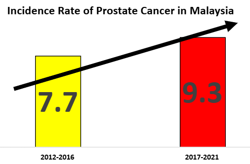 Incidence rate of prostate cancer among Malaysian men has increased in 2021 to 9.3 compared to 7.7 in 2016 for every 100,000 men in the country, according to latest National Cancer Registry Report 2017-2021.